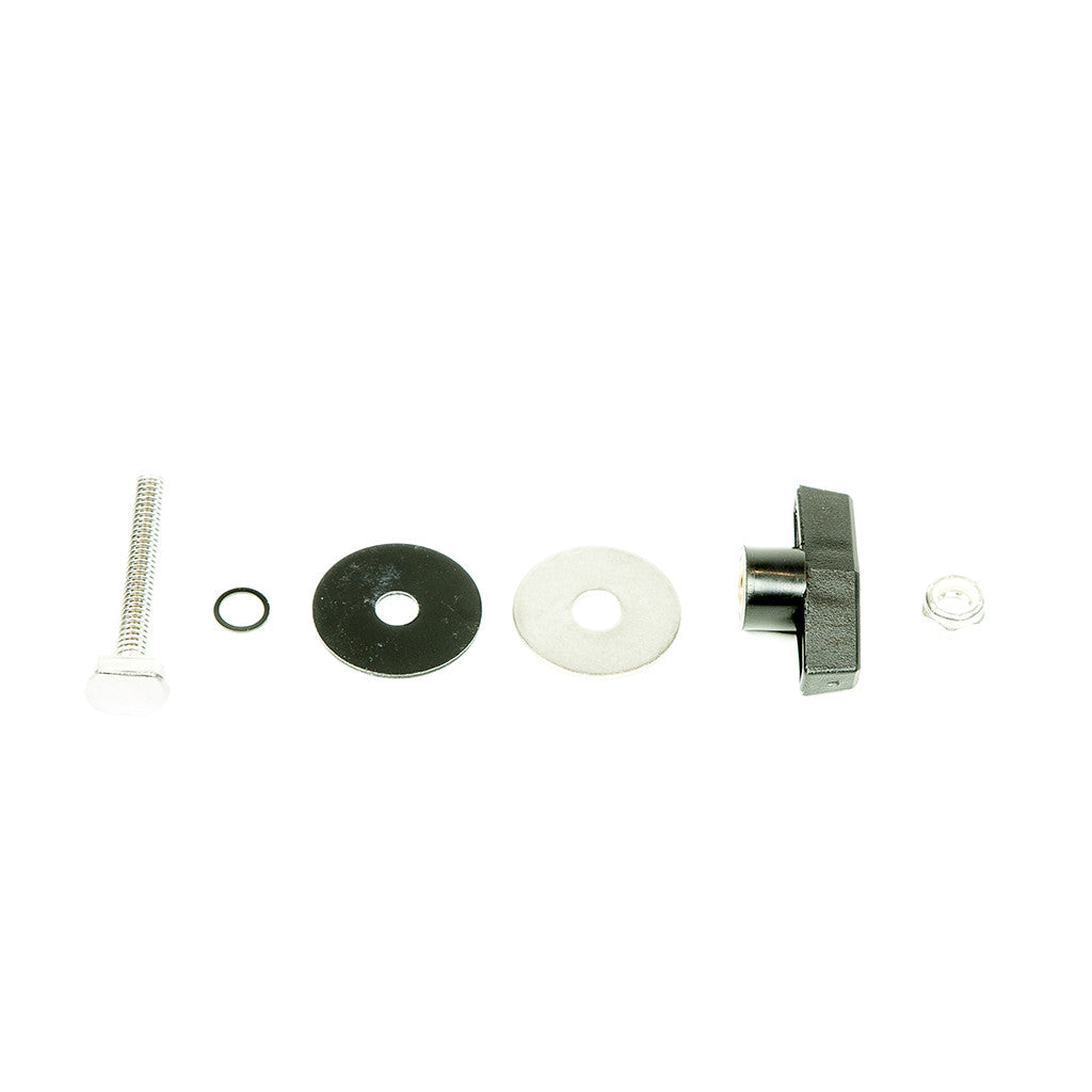 Wing nut and t bolt hardware kit one - t bolt, one wing nut, one ss fender washers, one plastic washer.